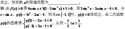 于真灵 三角函数中参数取值问题是高考中的重要考试内容之一,常用到函数与方程思想、不等式思想、化归思想、数形结合思想等。纵观高考试题,选择题、填空题、解答题中每年都有三角函数中参数取值的题。近年来高考中常见的题型有: 一、利用正(余)弦函数的有界性 【例1 】设 C.有最大值且有最小值 D.既无最大值又无最小值 解析:令 【点评 】函数