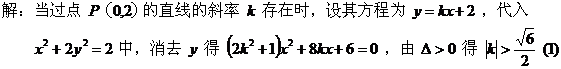 而 所以 [点评] 本题巧设A、B两点的坐标,但并不求出其坐标,而是利用了根与系数的关系,代入向量垂直与弦长公式直接求出K值和AB的长。高考往往在此设计题,这是最常用的解法。 2、巧设相关参数 [例2](2008年高考安徽卷文科)设椭圆 (Ⅰ)求椭圆 (Ⅱ)已知过点 (Ⅲ)过点 的最小值 解 :(I)易得:椭圆 (II)当 将其代入方程 设
