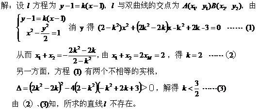 [点评] 本题巧设过F的直线方程为 K是否存在进行分类讨论。 二、“设而不求”中应注意的两个问题 1、注意隐含条件 [例4]