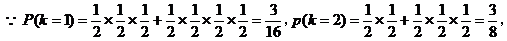 已知小球从每个叉口落入左右两个管道的可能性是相等的. 某商家按上述投球方式进行促销活动,若投入的小球落到A、B、C, 则分别设为l、2、3等奖. (1)已知获得l、2、3等奖的折扣率分别为50%、70%、90%. 记随机变量 (2)若有3人次(投l球为l人次)参加促销活动,记随机变量 【寻找突破口】(1)从题意中提取数学模型,随机变量 解:(1)