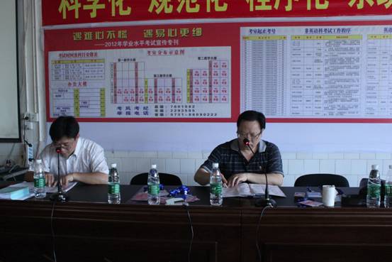 5月9日下午,2012年学业水平考试绥宁一中考点培训学习在该校考点办公室进行。全体考务人员对工作细则和考试程序进行认真学习并观看了培训光盘。县教育局副局长、一中考点秦贵军强调,大家一定要在思想上高度重视,严守纪律,严肃考风考纪,确保万无一失。 本次学业水平考试科目共九门,分别为:语文、数学、英语、政治、历史、地理、物理、化学、生物。绥宁县共有考生1518人,设一中和二中两个考点,其中绥宁一中考点977人。