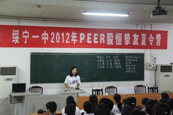 7月15日,绥宁一中PEER毅恒挚友夏令营开营仪式在该校举行。来自牛津、剑桥、清华、人民大学等高校的12名优秀大学生挚愿者,将携手绥宁一中实验班部分学生开展为期2周的“PEER毅恒挚友计划”支教夏令营活动。 本次夏令营活动将以英语教学、研讨会、团队活动、经验交流、兴趣小组、自主活动为主要模块,致力于让学生通过与挚愿者的深入交流,培养开放性思维,形成良好的学习习惯,以便学会在未来的人生中适应并改善环境,做出适合自己的选择。 “PEER”是一个以海外中国留学生和中国知名高校学生为主体,内陆欠发达地区中学生为对象,以乡土博雅教育、实践服务学习和团队协作创新为主要方法,以激发学员独立思维、培养创新能力、锻炼团队意识和增强社会责任感为主要目标,以补充与促进内陆欠发达地区中学阶段教育为基本目标的非营利组织。至2006年成立以来,“PEER”的足迹已经到达中国湖南、贵州、广西、甘肃等各地偏远山区学样学校,参加PEER暑假项目的“挚愿者”已达二百多名,他们来自世界8个国家和地区的53所高校,形成了一个初具规模的“PEER”网络今年是该组织首次来到绥宁。