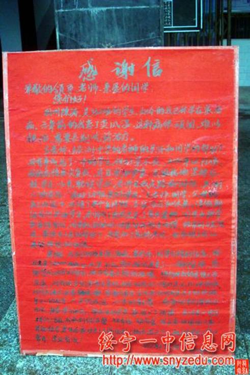 学生家长为感谢师生资助儿子治病写感谢信致谢 来源:绥宁一中校园网 作者:图(向祖杰) 文(龙景忠) 更新时间:2011-4-27 阅读:35586次 |