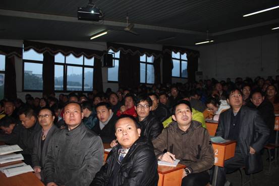 | 12月19日下午,绥宁一中全体教职员工在学校会议室认真听取了邵阳市教育学院、邵阳市教育科学研究院副院长张三平同志名为“关于对教育的哲学思考”的专题讲座。