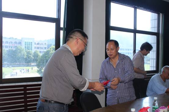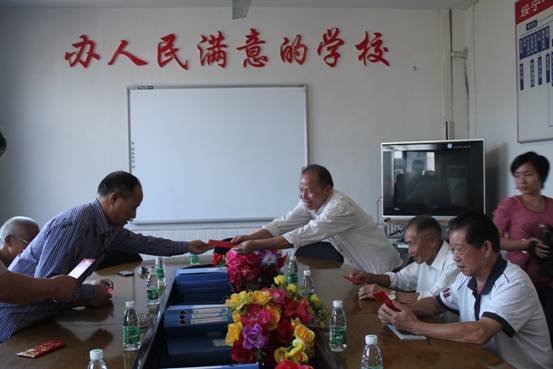 在学校行政会议室里,袁景甫副书记和退休教师刘应胜等拉起家常,了解他们的生活情况,并请唐立新校长转达对全校教师节日的问候。杨芳斌局长代表教育局党委向学校发放了5000元慰问金表示对节日的祝福,希望全体教师齐力协力,共创新的佳绩。