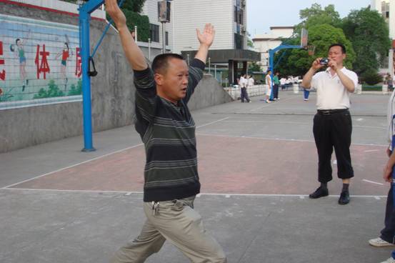 体育组挂点领导彭礼林在讲解动作要领