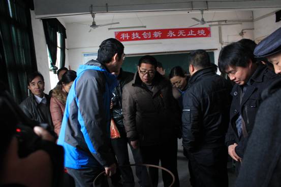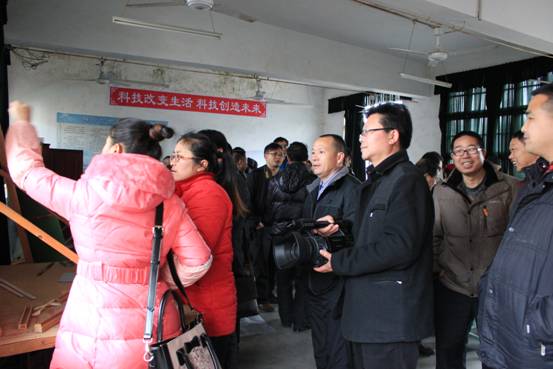 3月3日上午,在县教育局肖庆明、张先邵和青少年活动中心杨友辉三位领导的带领下,来自全县教育新闻骨干、科技辅导员和科协的领导,参观了我校科技展览室、科技制作室、手工制品展览室、通用技术室和竹园。