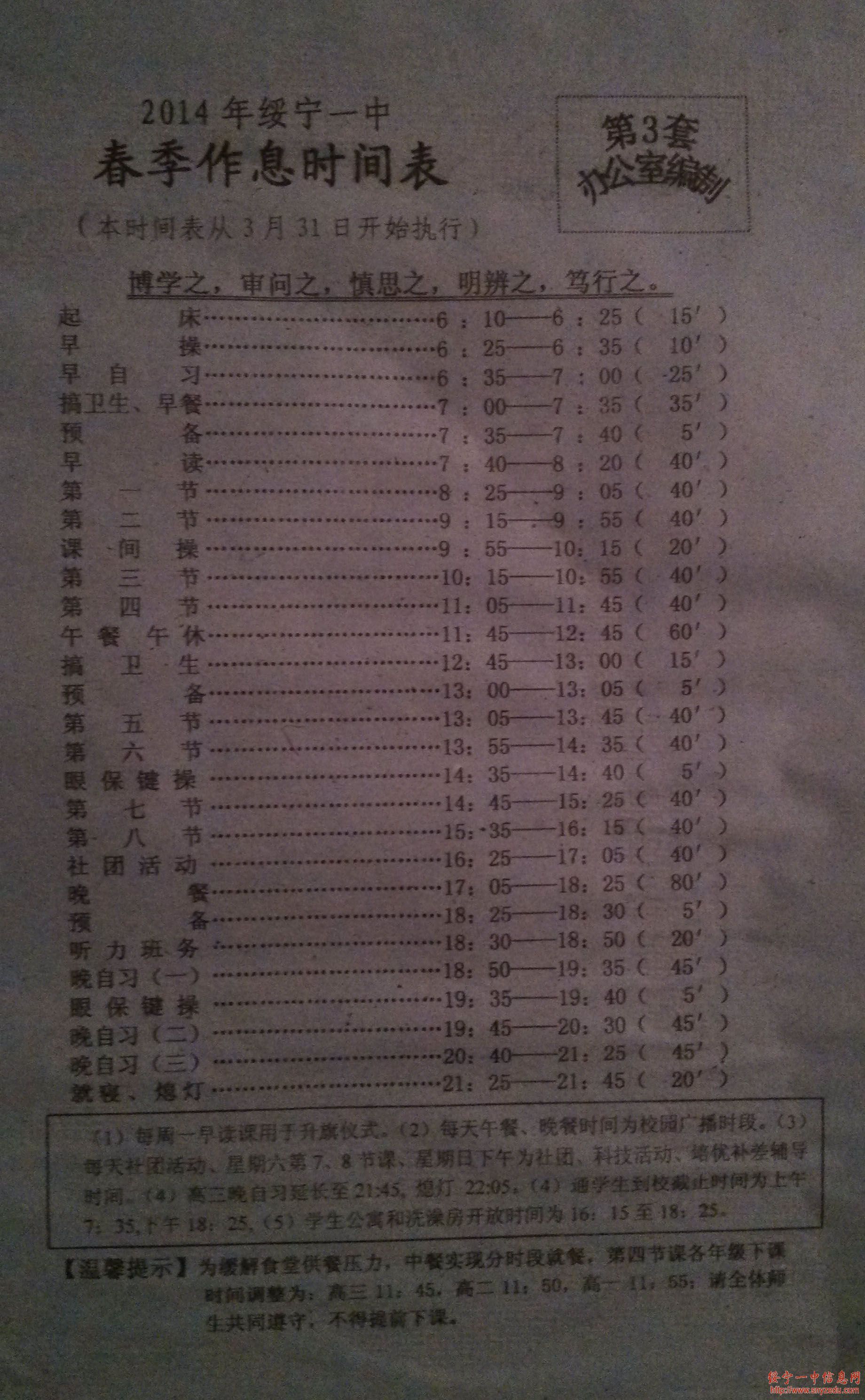 新的作息时间表已排好(如下图),请各位老师到油印室领取!