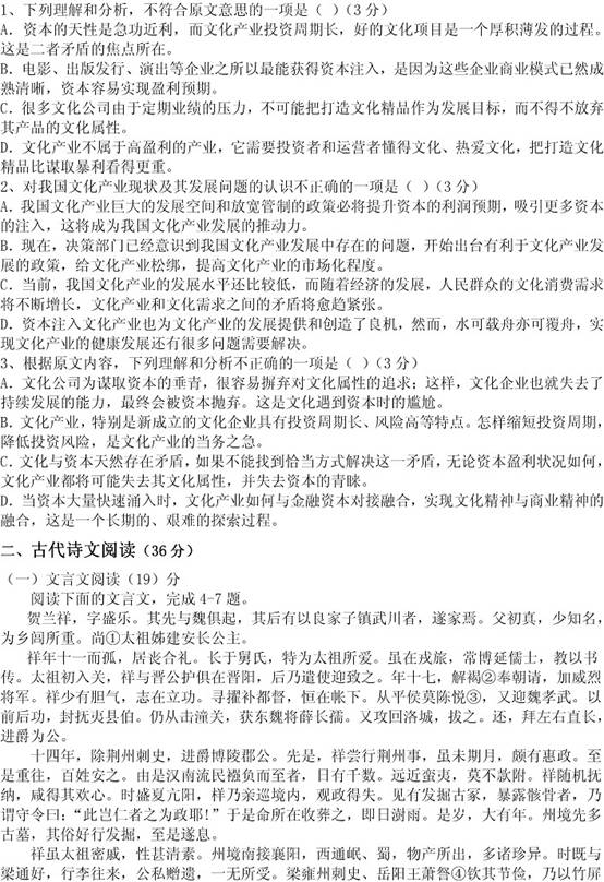 下接:2014年全国高考一模语文答案(新课标1卷)