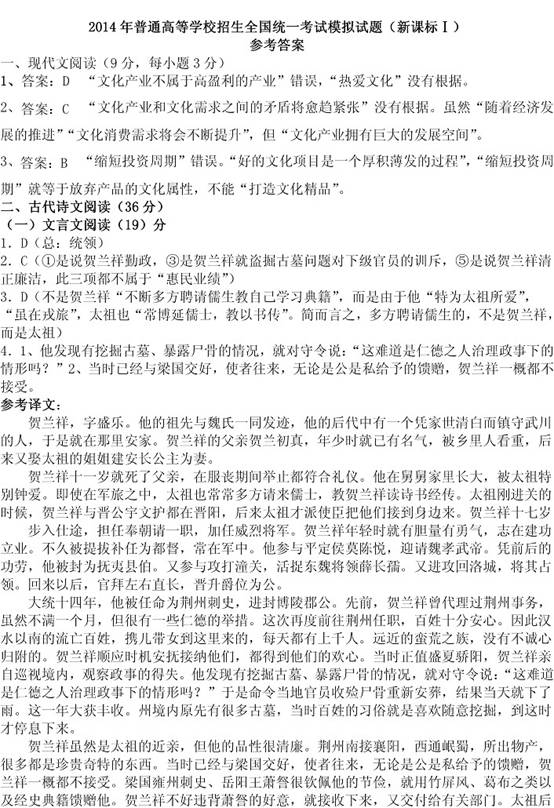 上接:2014年全国高考一模语文试题(新课标1卷)