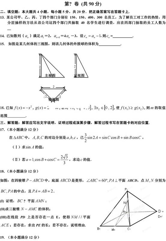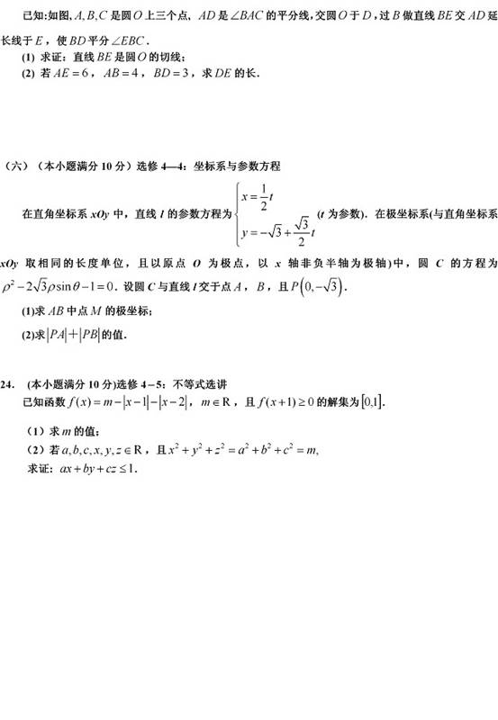 下接:2014年全国高考一模数学试题答案(文科)(新课标1卷)