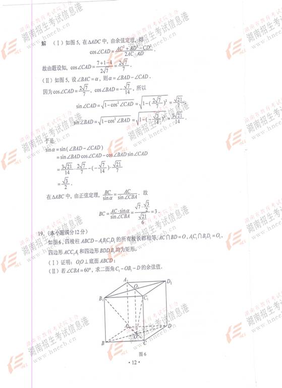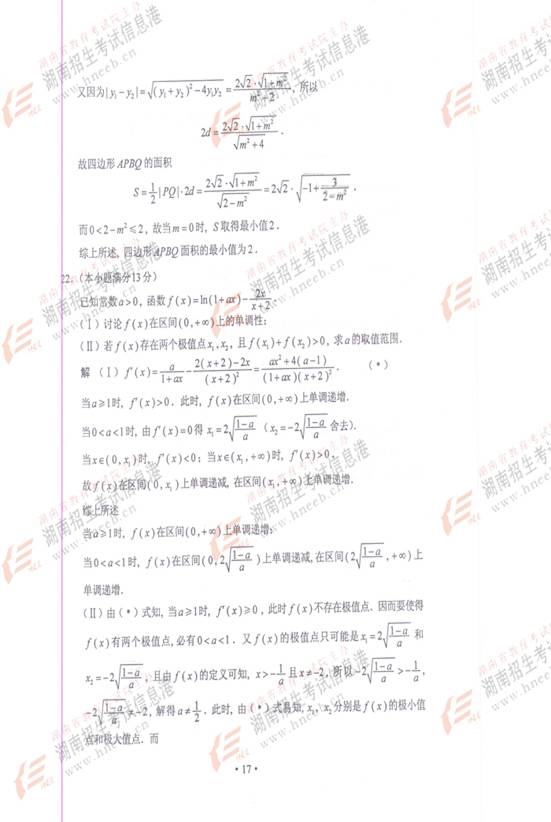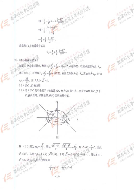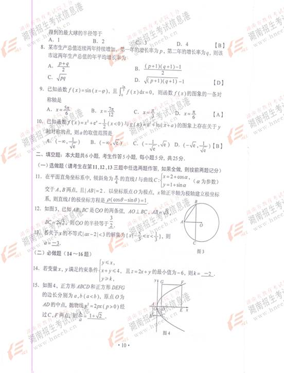 2014年全国普通高校招生统考(湖南)试题参考答案(数学理)