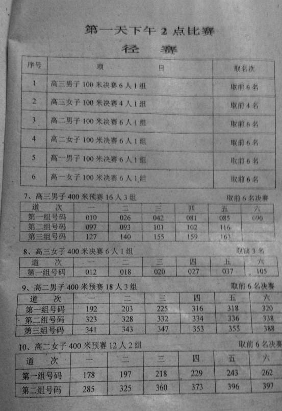 2015年秋季田径运动会竞赛分组安排表(第一天)