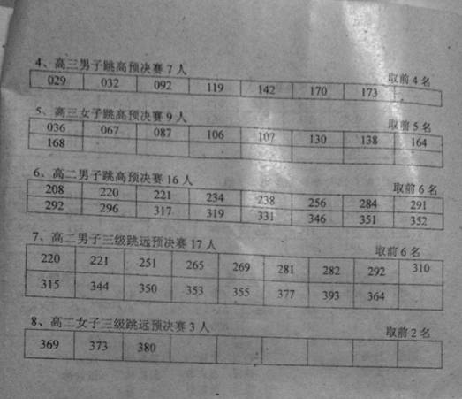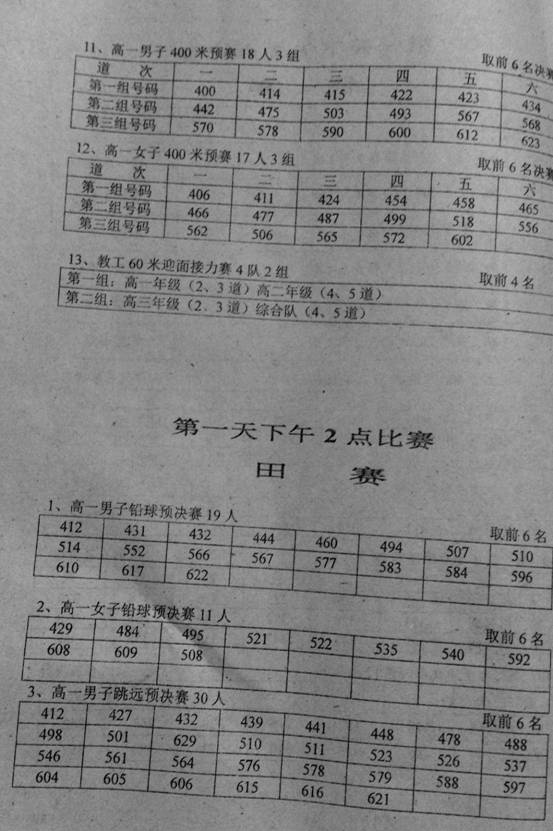 2015年秋季田径运动会竞赛分组安排表(第二天)