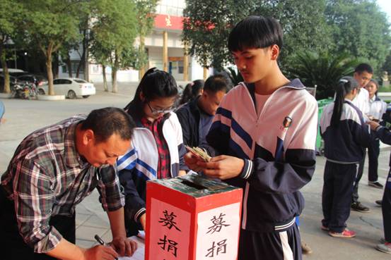 这本是一个幸福的家庭,虽然生活在湘西南边陲一个贫困的山村,但是,父亲勤劳朴实,母亲温柔善良,他们还有一个乖巧上进的孩子陶家盛,就读于绥宁县第一中学高三413班,像许许多多大山里的平凡家庭一样,爷爷奶奶守着两亩薄地,父亲母亲在城市的高楼大厦间奔波挑起家庭的大梁,孩子刻苦学习传承长辈的希望,父慈子孝,夫善妻贤,日出而作,日落而歇,他们过着平凡但宁静的日子。然而,命运却和他们开了一个残酷的玩笑,这种详和被一场突如其来的变故彻底摧毁。 2016年9月22日,秋分,酷暑悄悄退去,空气中有了一丝丝凉薄。像往常一样,工作了一天的母亲黄秋蓉回到出租屋,淘米做饭,准备给丈夫做两道合口的家乡小菜,毫无征兆的,媒气罐突然爆炸。倾刻间,黄秋蓉置身火海,身体瞬间被大火吞噬。黄秋蓉被送到医院抢救时,已经伤痕累累,面目全非,昏迷不醒。虽然经过医生全力抢救脱离了危险,但是,全身高达70%以上的烧伤面积加上气体吸入性损伤,双眼烧伤,如今每天高达2万元的治疗费,专家估计至少还需要50万元才能保住性命的后续费用足以让一个农民家庭走上绝望。从死亡线上挣扎着逃出鬼门关的黄秋蓉可以忍受病痛的折磨,却不愿意成为家人的负担,她太清楚自己的经济承受能力,黄秋蓉费劲力气发出短暂微弱的声音:“放弃吧,我们回家”。可是,有妻子的地方才是家,有妈妈的孩子才是宝,丈夫和儿子,这两个男人在灾难到来时表现出前所未有的坚强与担当,他们发出共同的声音:无论如何,也要给黄秋蓉生的希望,要她活下来。 消息传到陶家盛就读的学校绥宁一中,学校领导高度重视,立即组织学生会、团委会在第一时间向全校师生发出募捐倡议书:“我们的同学遭遇如此大的不幸,我们怎能不闻不问,袖手旁观呢?我们相信,人家自有真情在,涓涓细水可以汇成大海,我们的每一份支持,都在传递一份生命的热度……”。一场声势浩大的爱心捐款行动在校园内迅速开展起来,广大师生纷纷解囊,积极捐款。短短5天时间,学校募捐点累计捐款金额达36921.73元,其中413班捐款5102元,班主任杨辉老师捐款800元,还有部分师生通过轻松筹捐款到网络平台再转到黄秋蓉家属帐户,多年来资助绥宁学子并在一中开办了“衣恋阳光班”的韩国衣恋集团也承诺拿出1万元善款帮助陶家盛度过难关,大家通过各种方式传递真情关怀。谱写了一曲爱的乐章,当陶家盛的父亲从副校长黄立志手中接过捐款时,这个朴实的农家汉子忍不住热泪盈眶,激动地说:“感谢学校!感谢老师!感谢同学们!你们的恩情我们终生铭记,我一定教育好孩子,努力学习,练好本领,报答这个充满爱心的社会”,满含热泪的父亲用深深的一个鞠躬表达了他对全体师生的感激之情。 命运无情人有情,虽然这些捐款对于后续治疗的巨额费用只是杯水车薪,但它给面临重重困难的家庭送去了希望和力量,为黄秋蓉送去温暖,增进她重新生活的信心,灾难无情人有情,济困美德永传承。