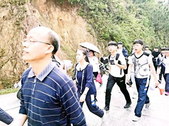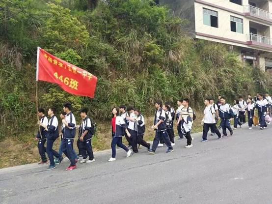 4月16日,我校成功举行了由2000余名师生参加、行程达18公里的远足活动。为确保活动取得圆满成功,学校召开会议,细心布置,将行政干部分工到年级、科任老师安排到班级,政教处制定有实施方案和应急处理预案,成立了领导小组、交通引导组、宣传报道组、安全保卫医卫组,全力保障师生安全、有序、健康开展远足活动。 上午8点,天气晴朗,高一、高二年级师生齐集操场整装待发,学校黄立志校长做了动员讲话,强调活动纪律;高一、高二学生代表表态发言;肖华平书记授旗给护旗手,唐立新校长宣布远足出发。一路上,红旗飘飘,队伍整齐,在崎岖的山路中前行,似一条生龙活虎的“虬龙”,精神抖擞、斗志昂扬。在此起彼伏的一片片歌声,一阵阵雄伟口号中,大家放松平日紧绷的大脑,轻松地欣赏着大自然给予的美景,用一个个脚印丈量、经历着意志的磨练。“积跬步,至千里;扬青春,磨意志”!走不动了,稍微休息一下,补充能量,然后相互鼓励着前进;脚上起泡了,咬着牙,搀扶着,藐视一切困难,坚持到底,相信成功就在彼岸。同时,同学们在老师、家长的激情感召下,表现出了前所未有的勇敢和坚强,不断超越着自我,以超人的耐力经过两个多小时后完成了光荣的远足任务。