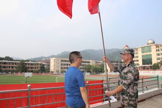 8月22日上午,我校2017级新生军训开训仪式在田径场举行。校长唐立新,党总支书记肖华平,副校长黄立志、陈贵,各连教官、班主任及880名高一新生参加了开训仪式。 开训仪式在庄严的国歌声中拉开帷幕。升旗仪式结束后,黄立志副校长代表学校对大力支持军训工作的教官致以衷心的感谢,对2017级新生表示热烈的祝贺,希望同学们端正态度,提高认识;尊重教官,虚心学习;遵守纪律,注意安全;吃苦耐劳,争先创优,发扬军人的光荣传统和优良作风,服从命令,听从指挥,使军训成为迈入高中生活中最坚定、最扎实的第一步。教官团长王强向参训学员提出了要求,并鼓励同学们学习军人敢闯敢拼的精神,通过军训规范言行,养成良好的习惯。教师代表和学生发言后,校长唐立新将旗帜交到王强团长手中并宣布:2017年新生军训正式开始! 本次军训为期7天,训练内容主要包括基本军事知识和技能、内务整理、校规校纪校歌学习等。为了确保军训高效顺利进行,学校邀请湖南武警学院优秀学员担任教官,成立了由校长担任总指挥的领导小组,制定活动方案,召开包括全体行政干部、班主任及政教处工作人员参加的专题工作会议,学生分成16个连队,白天组织军事训练,晚上进行入学教育和内务整理,并在军训结束时开展阅兵暨军训总结评选,表彰优秀学员和优秀班级。军训活动的开展,对增强学生的国防意识和组织纪律观念,提升中学生核心素养,培养学生独立生活能力具有重大而深远的意义。