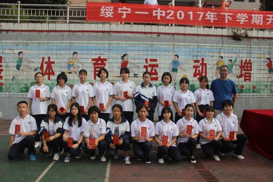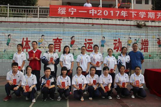 9月6日上午,绥宁一中2017年下学期开学典礼在大操场隆重举行。党总支书记、副校长肖华平主持,学校行政干部、年级组长、教研组长、班主任、政教处管理人员及近3000名学生参加了开学典礼。 开学典礼在庄严而雄壮的国歌声中拉开序幕,全体师生整装肃立,五星红旗冉冉升起。升旗仪式后,同学们举起右手,在学生会主席的带领下,以绥宁一中学生的名义宣誓:知荣明耻,严守校规、坚毅自信……。教师代表、学生代表、家长代表分别发言。唐立新校长对新招聘的11名老师和近900余名新同学的到来表示热烈的欢迎,希望高一同学保持军训时的精神风貌,在最短的时间内进入学习状态,融入高中生活;高二同学在平稳过渡的基础上,用信心作桨,坚持作帆,在学业水平考试中更为辉煌的篇章;高三同学明确目标,立大志,勤学习,勇担当,增强自信,为考入理想的大学奋力拼搏。最后,贺占宏副校长宣读2017年湖南省青少年机器人竞赛、第38届湖南青少年科技创新大赛获奖、2015级学业水平考试优秀学生奖、2017级优秀新生奖、2016级期末统考优秀学生奖、2017年择校生高考优秀奖名单。本次大会共计发放奖金45000余元,科学的奖惩机制鼓舞了大批渴望上进的学生,新的学期的第一次学生大会,从树立榜样,明确目标开始。 开学典礼在热烈的掌声中圆满落幕,绥宁一中又迎来了新的起点。新的学期,开启新的希望,承载新的梦想,在新学期里,全体师生一定会齐心协力,用智慧与汗水谱写绥宁一中崭新的篇章,我们相信,在全体师生的不懈努力下,在领导、社会和家长的大力支持下,绥宁一中一定会迎来更加灿烂辉煌的明天。 升国旗