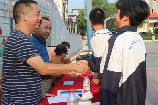为弘扬中华优秀传统文化,积极培育和践行社会主义核心价值观, 9月15日,“践行中国梦,感恩公益行” 大型公益演讲报告会走进校园,近3000名师生聆听了e百分教育集团文华老师的主题演讲。 校长唐立新代表绥宁一中师生,向演讲团一行表示热烈的欢迎和衷心的感谢。文华老师用生动的事例、极具感染力的语言、高超的演讲魅力、感动了现场的每一位老师和学生,会场赢得了一次又一次热烈的掌声。当讲到家国情怀时,现场庄严肃穆,国歌响起,全体学生举起右手向国旗敬礼,表达对祖国的热爱;讲到汶川大地震时,同学们低头向所有死难的同胞默哀;当讲到父母对子女的无私奉献时,同学们潸然泪下,双手高举过头顶,“爸爸妈妈我爱您,爷爷奶奶我爱您…”呼喊声响彻整个校园;讲到感恩老师时,同学们争先恐后走上讲台,用真挚的语言表达对老师的感谢,和老师深情相拥。这一幕幕场景,一声声发自内心的表白,唤醒所有同学去感恩父母、感恩老师、感恩祖国,同时对激发孩子们学习潜能具有深远的意义。 演讲结束后,唐立新校长做总结性发言,全体同学跟着唐校长振臂高呼“昨天的我已经过去,今天的我重新开始,明天的我再创辉煌”。 为了帮助同学们提高学习成绩,e百分教育集团向学生免费赠送了在线教育学习卡,让山区的孩子拥有优质的教育资源,通过在线学习获得成长和进步。
