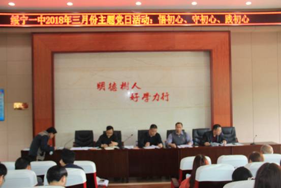 3月30日下午,绥宁一中在学术报告厅开展3月份主题党日活动,全体党员“悟初心、守初心、践初心”,深入查找自己在践行初心和使命方面突出问题工作。 会上,唐立新校长传达了上级有关文件和会议精神,并对此次主题党日活动提出了具体的建议和要求。党总支书记肖华平强调,党员教师一定要在思想上高度重视,开展自我批评,从信念是否坚定、宗旨是否牢固、初心是否缺失、使命感是否强化、担当是否有力五个方面开展党性分析,要坚持问题导向,深化问题意识,深入深刻的查找不足与差距。 总支会议结束后,文科和理科支部召开会议,按照学校党总支的要求,每位党员结合学校实际和本职岗位,对照五个方面14个问题一一进行查找,每位党员都提交了书面的问题清单,对存在问题列举具体表现和典型事例,为全力推进学校党建工作上新台阶奠定了思想基础。
