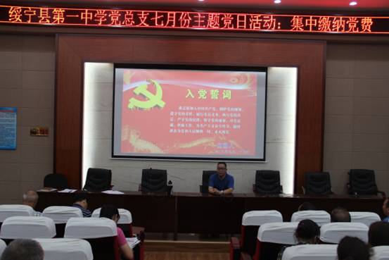 我校开展集中交纳党费7月份主题党日活动 来源:绥宁一中校园网 作者:侯慧 更新时间:2018-10-16 阅读:56173次 |