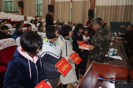 1月8日上午,靖州96731部队爱心助学捐赠仪式在绥宁一中学术报告厅举行。96731部队政治工作部史云辉主任为绥宁一中、实验中学共名品学兼优的贫困学生每人送来1000元助学金,并为思源中学捐赠了价值10万元的电脑及桌椅。捐助仪式由县教科局资助中心刘芳主任主持,县教育科技局邹建新副局长、绥宁一中校长唐立新、思源中学校长杨通来参加了本次活动。 唐立新校长对96731部队的官兵表示衷心的感谢,要求同学们记住这份温情,怀感恩之心、行无愧之事、做有用之人,以实际行动回报社会。史云辉主任希望同学们做有理想的人,以青春之我、奋斗之我,茁壮成长为建设祖国的栋梁之材,为民族复兴铺路架桥,为祖国建设添砖加瓦。最后,邹建新副局长感谢96731部队官兵的无私奉献,爱心助教,相信同学们能获得力量,战胜困难,做理想远大、品行端正、学习优秀的人。