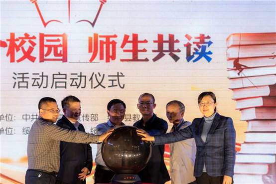 春光美如斯,正是读书时。为了进一步推进全县文化建设,提高全民思想道德素质和科学文化素养,在全县各中小学营造浓厚的读书氛围, 4月18日,由中共绥宁县委宣传部、县教育局主办,县新华书店、我校承办的“书香校园•师生共读”活动在我校正式启动。县委、县政府、县人大及县教育局领导,县新华书店负责人,各中小学一贯制学校校长,我校教师、学生代表共1400余人参加本次活动。 启动仪式在县实验中学的经典咏唱中拉开序幕,我校学生表演的扇子舞和百人朗诵《少年中国说》,宣传片《城之阅》和视频《让我们一起读书吧》让观众深深体会到传统文化的魅力。我校校长唐立新致欢迎词,市文联主席张千山作“读书成就文化自信”演讲报告,县新华书店副经理作服务承诺,学生代表宣读倡议书,教师代表宣讲阅读推广人宣誓词,县教育局局长罗青松作重要讲话。最后,市文联主席张千山、县委常委宣传部长殷继东、县政府副县长戴蹇吾、县政协副主席杨先光、县教育局局长罗青松、县新华书店经理杨芙蓉等六人一起按亮启动球。 市文联主席张千山、县委常委宣传部长殷继东、县政府副县长戴蹇吾、县政协副主席杨先光、县教育局局长罗青松、县新华书店经理杨芙蓉等六人一起按亮启动球。 为确保“书香校园•师生共读”活动正常有序开展,我县各中小学校、中职学校将持续开展“中华经典诵读”阅读、“经典伴我成长”青少年最喜欢的图书推荐、教师阅读和“共享阅读•书送希望”爱心捐赠活动,以提升广大师生的学习兴趣和能力,并建立考评机制,进行“书香校园”、“书香少年”、“书香教师”创建评比。各种活动的开展,将激发广大师生的阅读兴趣,形成浓厚的阅读氛围。