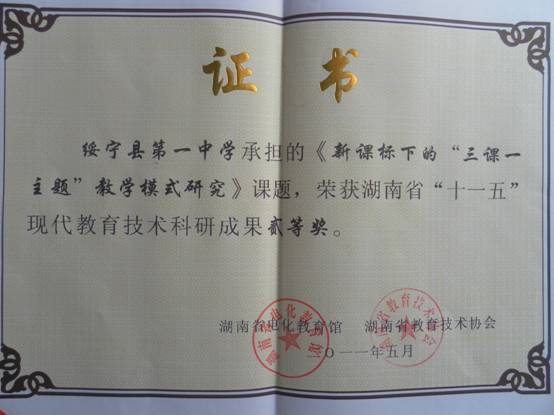 我校承担的《新课标下的“三课一主题”教学样式研究》课题评为省二等奖 来源:绥宁一中校园网 作者:办公室 更新时间:2011-5-25 阅读:37688次 |