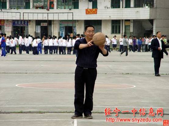总务处副主任、体育老师彭礼林在比赛中