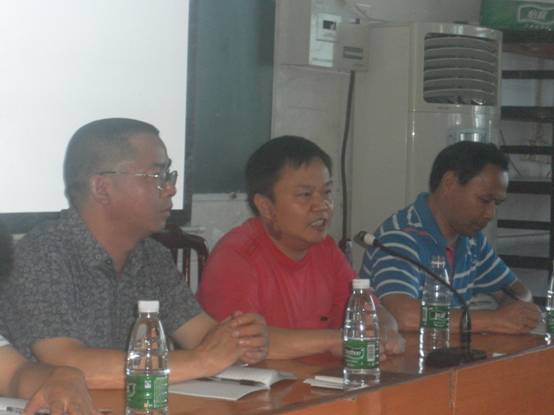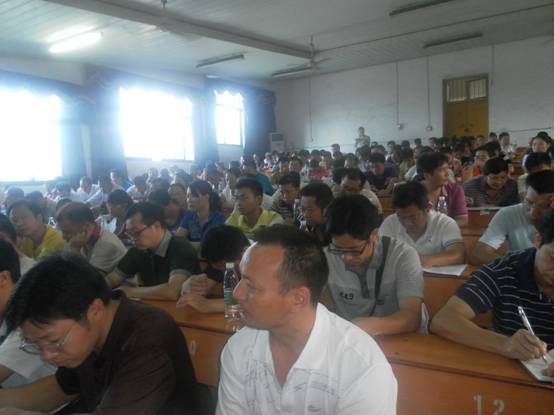8月29日,绥宁一中全体教职员工在学校教工会议室进行业务培训。县教研室主任刘天华到校做了以“高唱课改主旋律,做自己心中最美的老师”为主题的报告,在报告中,刘天华主任旁征博引,阐明树立新课改理念的关键在于转变教学观念,转变老师角色,转变教学行为,转变学生学习方式。在课堂教学中,要相信学生,关注弱势群体,着力于提高学生的学习兴趣,善设能够激发学生主动学习的问题情境。党总支书记肖华平对该校2011年上期的工作进行了总结:绥宁一中在今年高考中再创佳绩,本二以上上线293人;高二学业水平考试荣获全市第6名,被邵阳市教育局授予2011年普通高中学校“学业水平考试教学质量优秀奖”荣誉称号;高一招生工作获得圆满成功,全县初中毕业会考前100名到该校就读达74人,前200名到该校就读达161人,50多名初中就读于湖南地质中学、麓山国际学校等长沙名校的优秀学生返回一中就读,优秀生源的巩固与回流,让全县父老乡亲看到了振兴绥宁教育的希望。贺占宏副校长对绥宁一中2011年下期教职工聘任情况进行了总结,县一中敢于尝试,推行竞争机制,根据教师的教学成绩和学生对教师的民主测评结果,结合教师的应聘申请,对教职员工全员竞聘上岗。对教学资历不合格的教师实行试聘一期,对年满58岁的教师可只根据学校安排完成临时性工作,对年满55岁的教师只安排一半工作量。这样既整合了教师资源,优化了教师结构,又调动了教职工的积极性、主动性和创造性。唐立新校长对新学期学校的工作重点进行了安排部署,本期学校将继续以“抓质量、抓管理、抓改革、抓特色”为工作目标,努力打造高效课堂、道德课堂,建立科学的教学质量监控体系,优化课堂设置,探索分层导学的教学模式。新的学期,新的希望,绥宁一中全体教职员工将齐心协力,开拓进取,坚持“发展才是硬道理,质量才是生命力”,办学生满意、家长满意、社会满意的合格、优质示范性学校。 刘先华主任做新课改知识报告