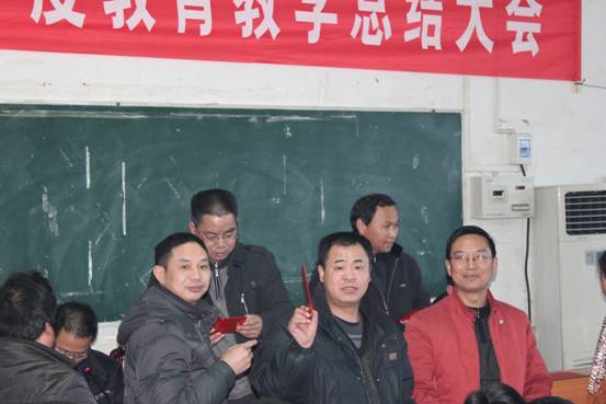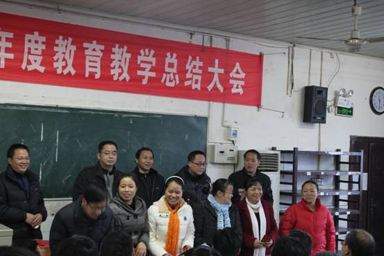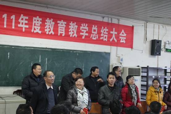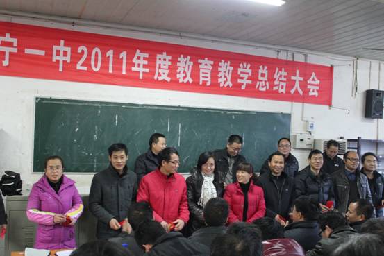 2011年的最后一天,对绥宁一中全体教职工而言,是个喜庆的日子,学校年度总结大会在教工会议室举行,会议分四个阶段进行。首先,唐立新校长致开幕词并对2011年的工作进行总结,提出2012年工作思路。接下来是先进经验交流会、高三交流会、高二交流会和表彰会。县德教双馨、品牌教师代表等作了先进事迹报告,2011届高三和高二年级组长、学科代表、毕业班先进个人代表介绍了复习迎考经验,2012届高三和高二年级组长对本届相应年级的学科复习具体情况进行汇报。下午,学校对高考、学业水平考试先进个人,优秀教研组、学校先进个人、高效课堂比武优秀获得者进行表彰,并为从教三十年的教师颁发了岗位奉献奖,最后由肖华平书记致闭幕词。会议结束后,全校教师齐集一堂,举杯同庆,告别2011,迎接龙年的到来。 本次教育教学总结大会是绥宁一中有史以来规模最大、现场颁奖项目最多的一次盛会,教师们纷纷表示,这样的大会,一定要坚持,每年进行一次,不仅能够加强教师之间的交流,更能增强教职员工的凝聚力,营造出一种和谐向上的氛围。