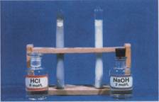 [板书]2、3Fe+4H2O(g) 三、铝与氢氧化钠溶液的反应 [设问]很多金属能与酸反应,但大多数金属却不能与碱起反应,铝遇到碱时能不能发生反应呢? [实验3-4]在2支试管里各加入5mlHCl和5 mL浓NaOH溶液,再分别放入一小段铝片,观察实验现象。过一段时间后,用点燃的木条分别放在2支试管口,有什么现象发生? [交流现象]都有气泡产生,试管口点燃都燃烧。