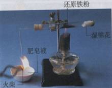 第一节 金属的化学性质 (第二课时) [教学目的]: 1.知识与技能: ①掌握金属(如铁等)和水的反应;铝和NaOH溶液的反应; ②探究性学习,观察能力及其抽象概括和总结归纳的能力。 2.过程与方法: 观察、记录、科学概括,通过实验来研究物质及其变化的科学方法。 3.情感态度与价值观: ①培养对化学现象和本质的辨证认识,以及热爱科学、尊重科学的思想; ②激发探究性学习的兴趣,培养主动意识,严谨求学,努力探索等的优良品质。 [教学重难点]: 铁与水蒸气及铝与NaOH溶液的反应原理;铝与NaOH溶液反应的实验现象观察 [教学过程]: [复习]金属钠与氧气及水的反应原理、化学方程式书写。 [思考]铁不与冷水、热水反应,是否与水蒸气反应? [科学探究]按图组装实验装置进行实验:
